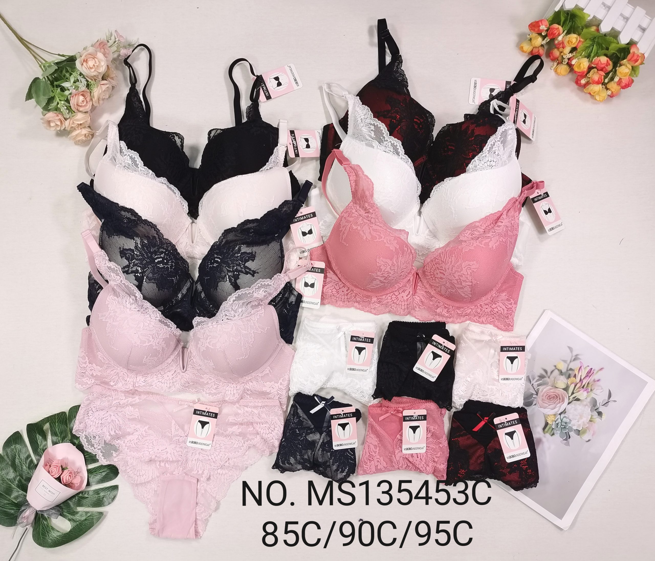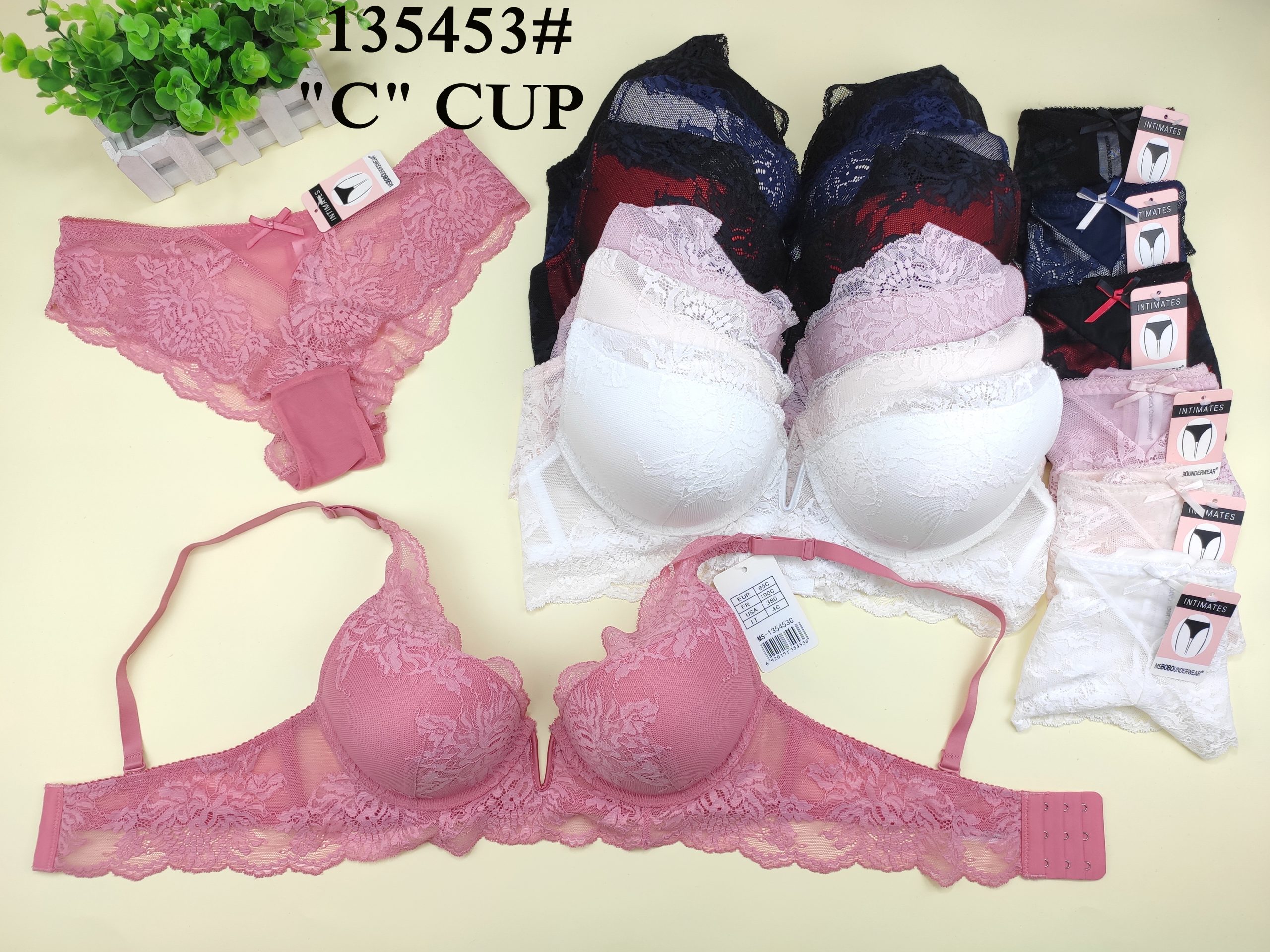 135551 Women’s Triple Row Hook Closure Lace Bra Set Double Layered Edge,