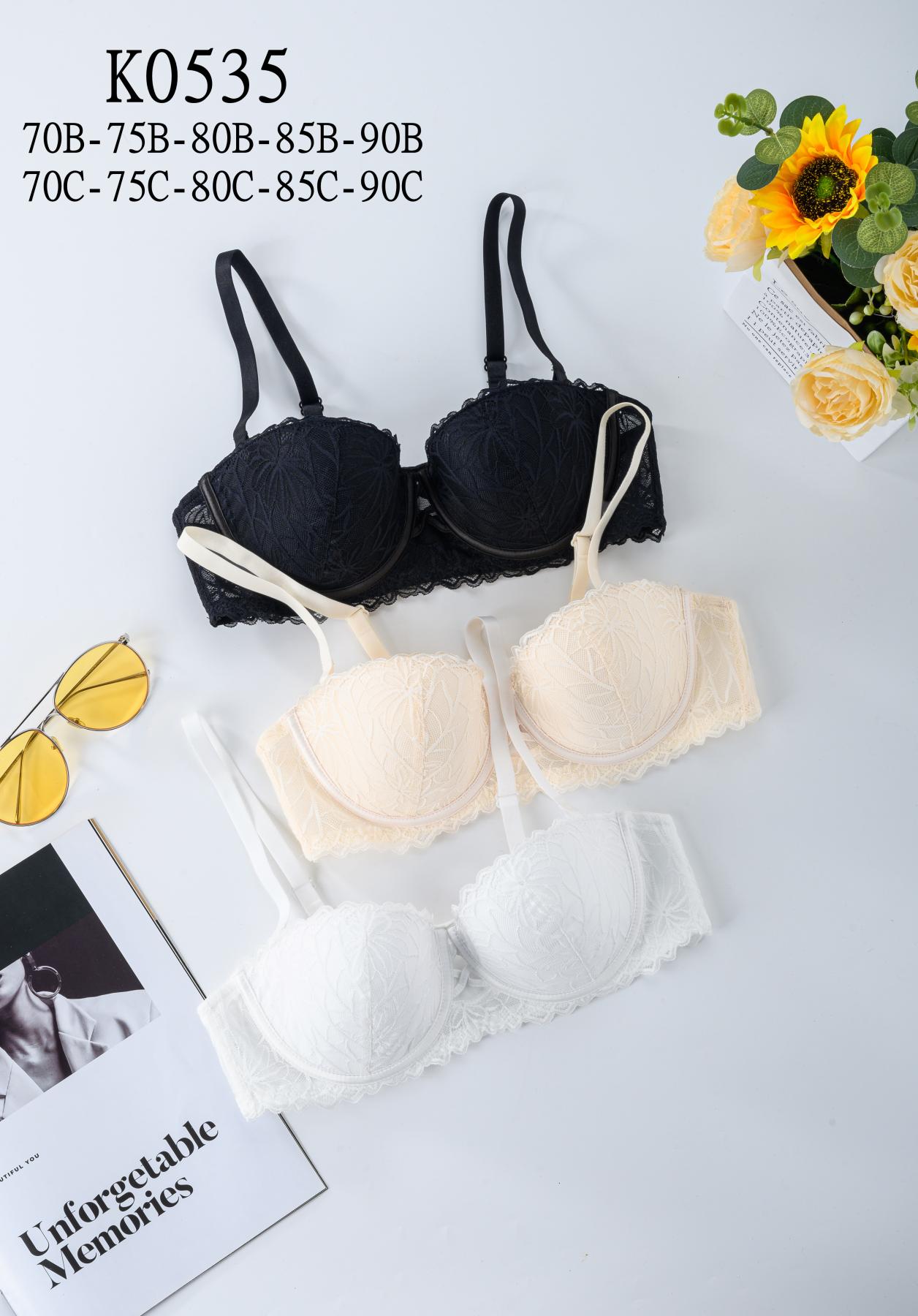 K0535 French Romantic Luxurious Lace Contrast Color Sexy Half-Cup Supportive Ladies Bra