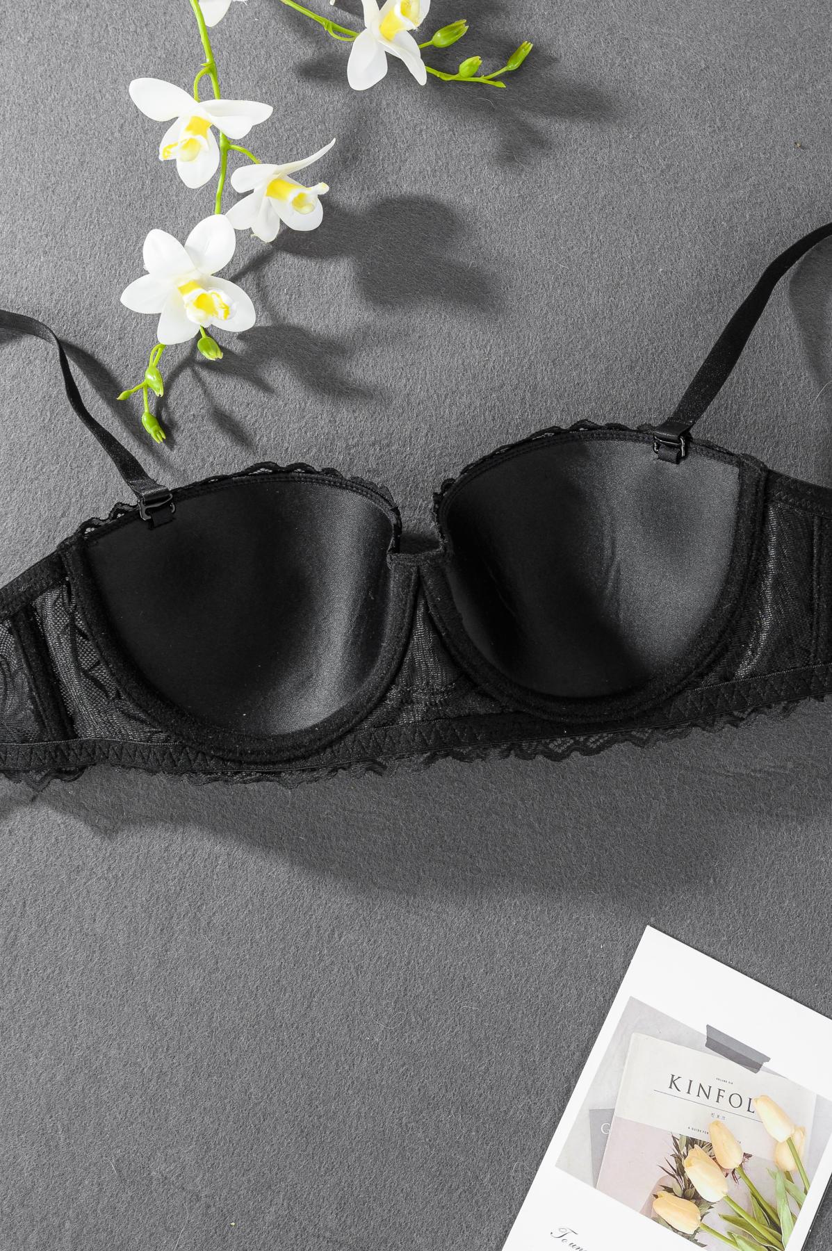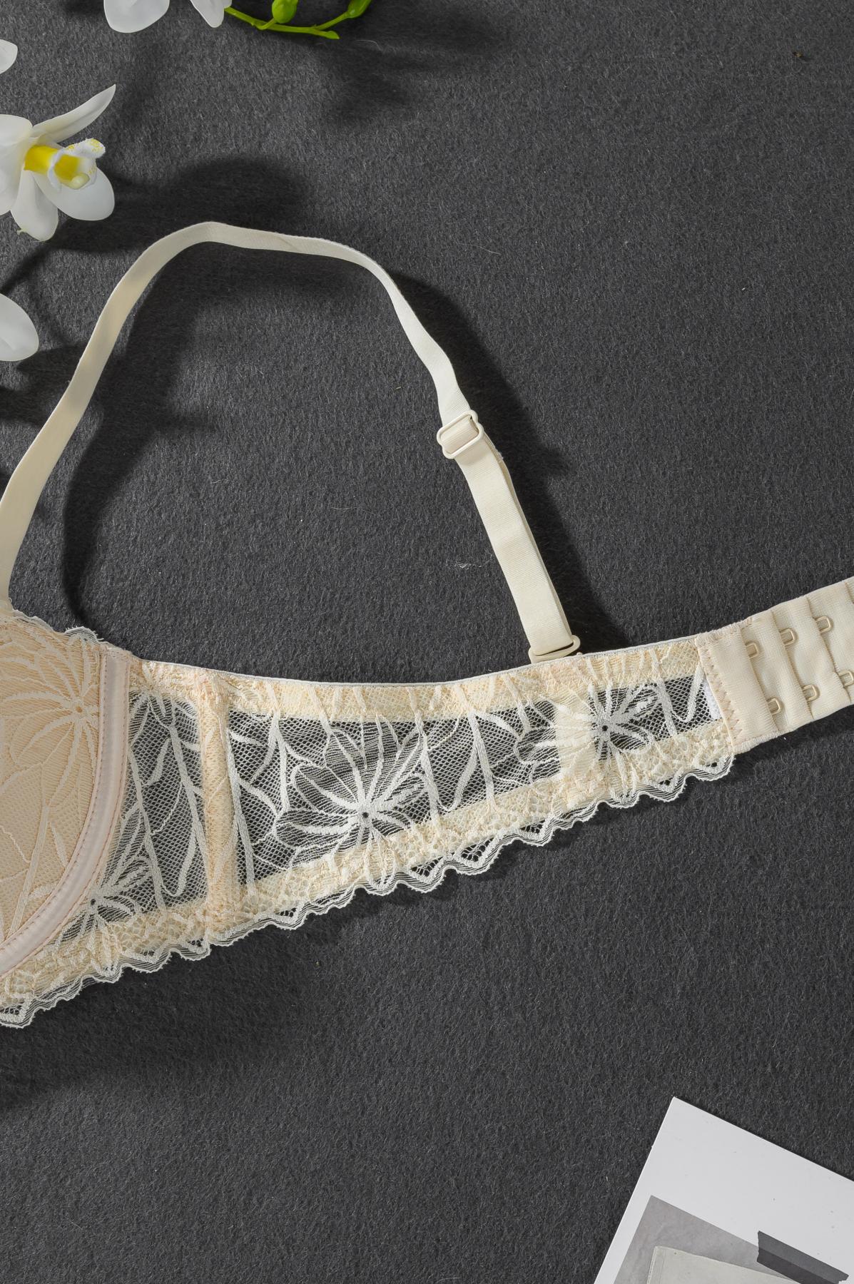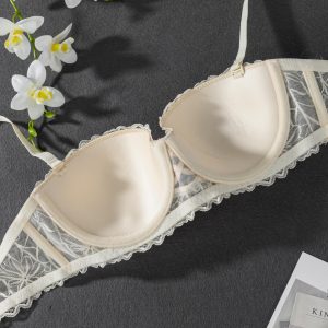Women’s Wire Bra, Minimalist, French Romantic Luxurious Lace Contrast Color Sexy Half-Cup Supportive Ladies Bra