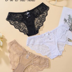 SS2023092裤 Underwear&Sleepwear Basics 3pack Contrast Lace Scallop Trim Panty Set Lingerie